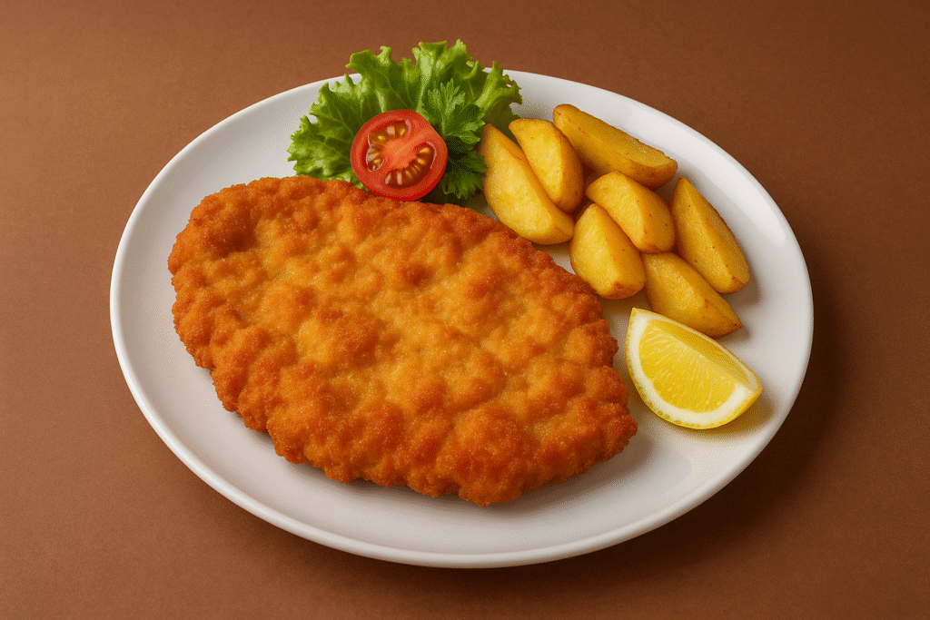 Der Klassiker der österreichischen Küche – goldbraun, knusprig und zart. Unser Wiener Schnitzel wird traditionell paniert, in frischer Butter gebraten und mit einer Zitronenscheibe serviert. Ein Stück österreichische Esskultur – frisch, hausgemacht und 100 % halal.